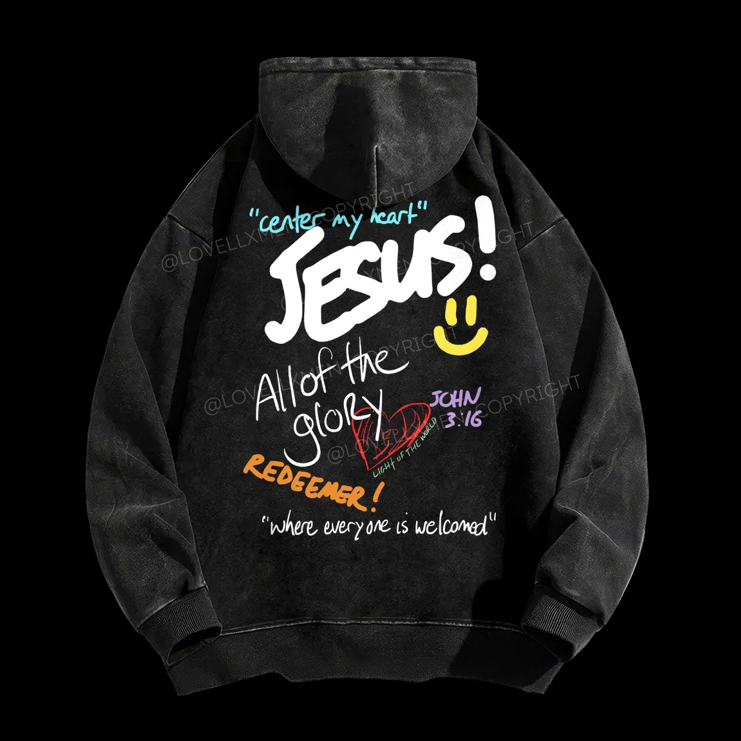Center My Heart Jesus Unisex Washed Hoodie$59.99 USD