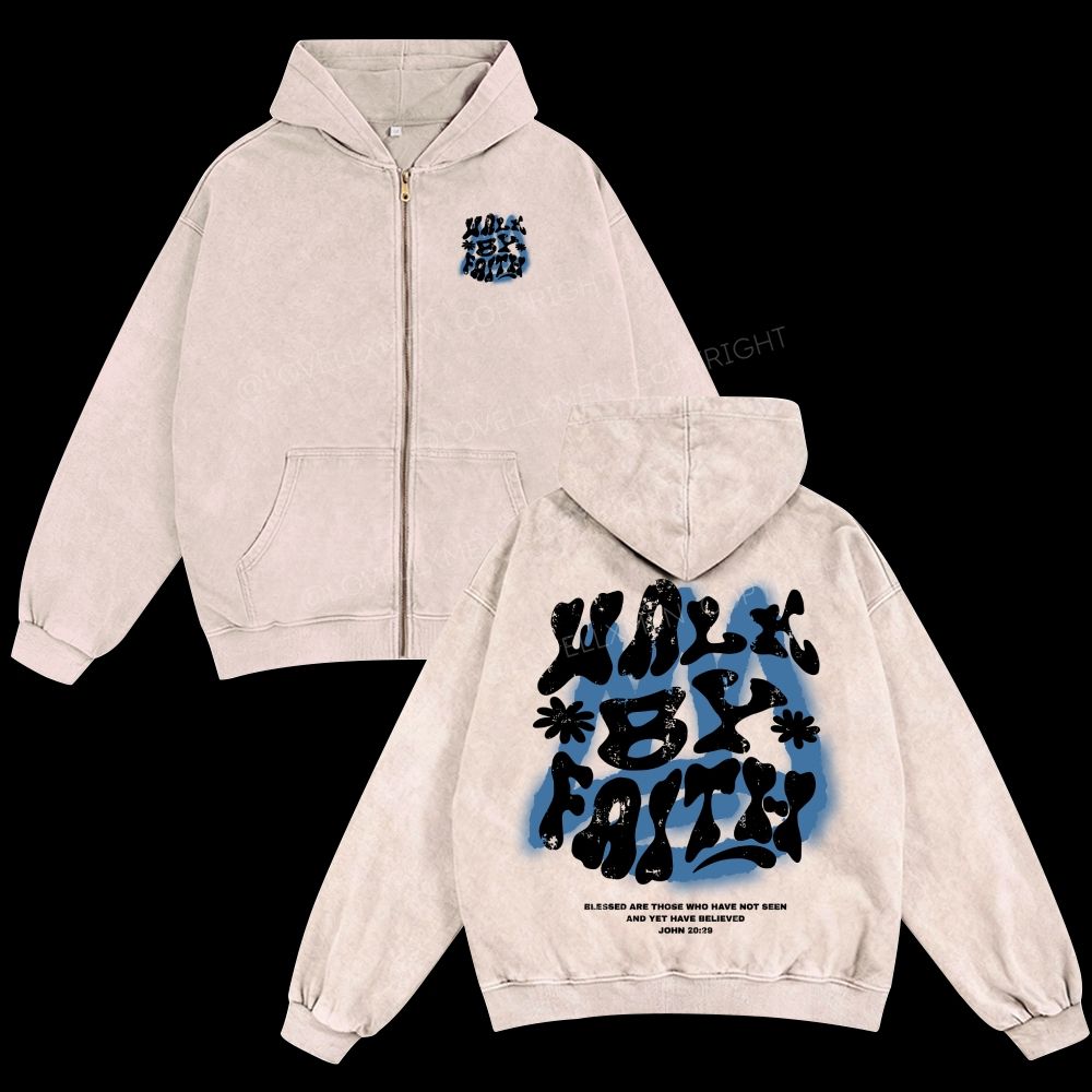 Walk By Faith Unisex Washed Zip-Up Hoodie$62.99 USD