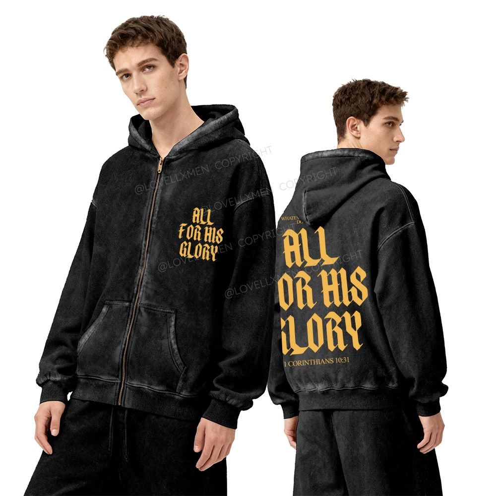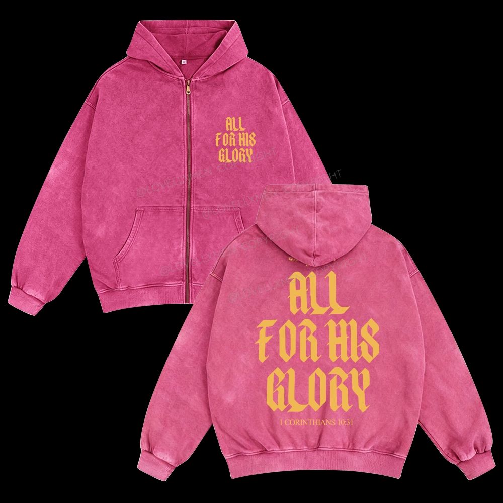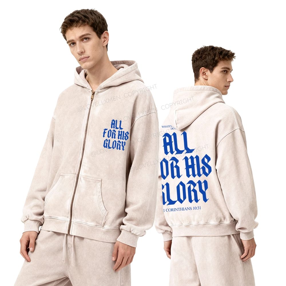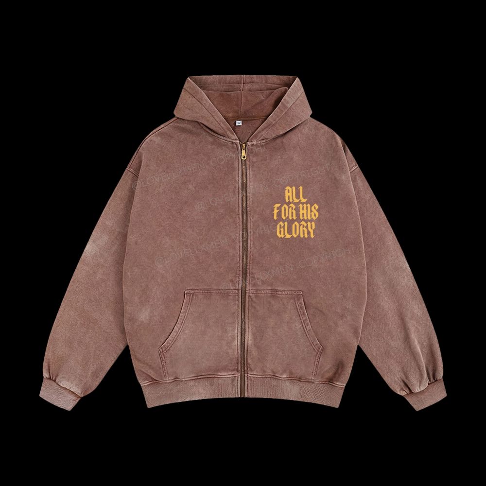 All For His Glory Unisex Washed Zip-Up Hoodie