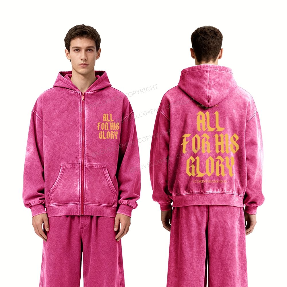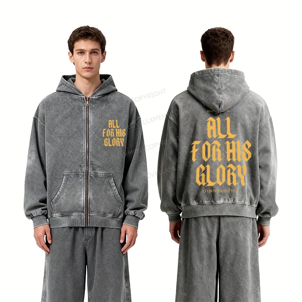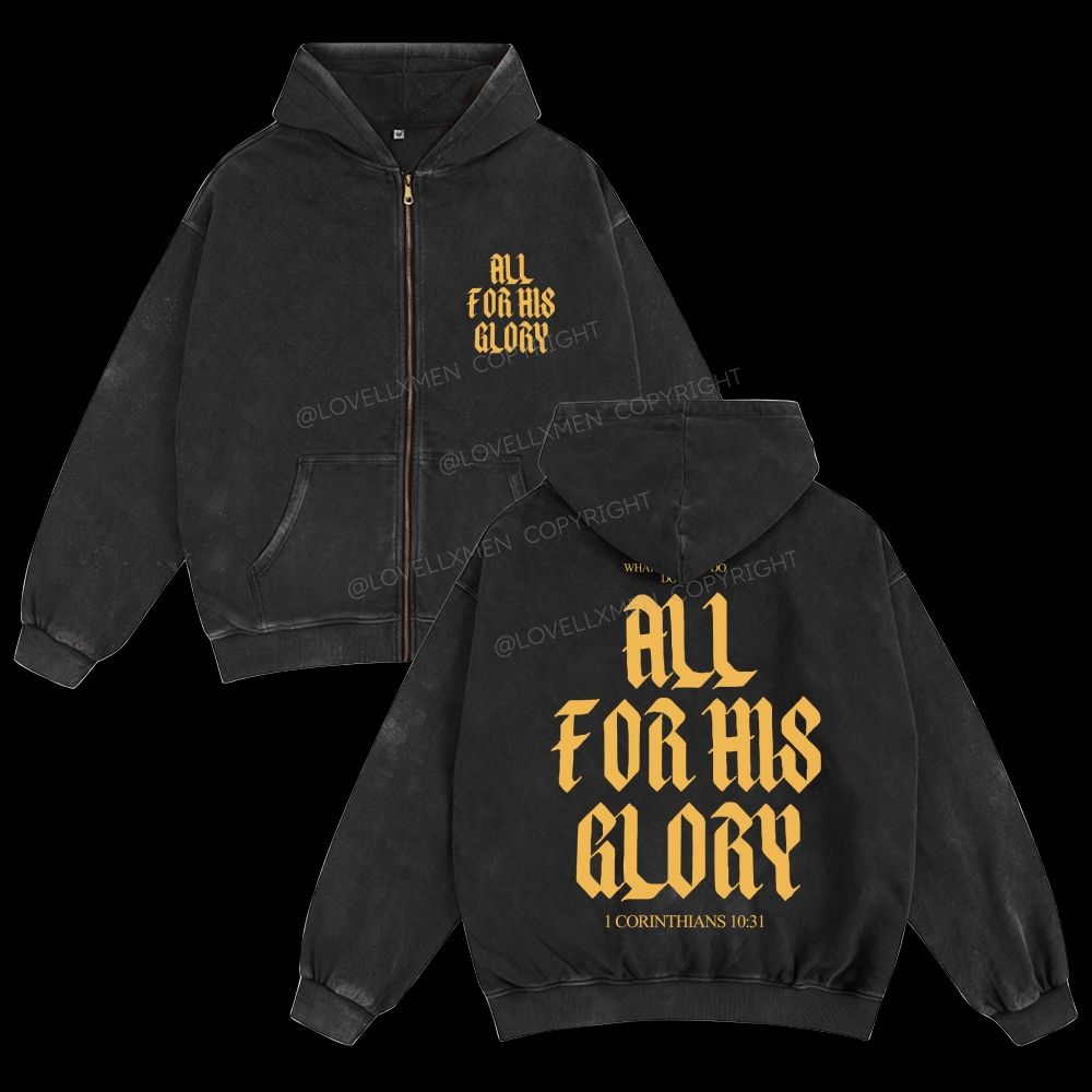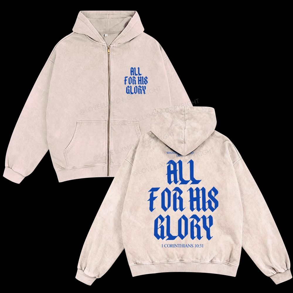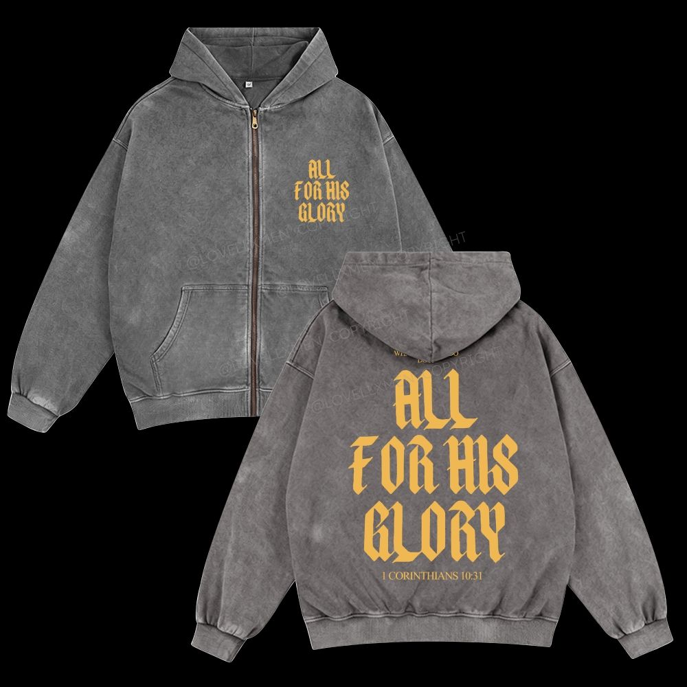 All For His Glory Unisex Washed Zip-Up Hoodie