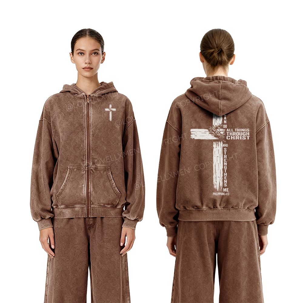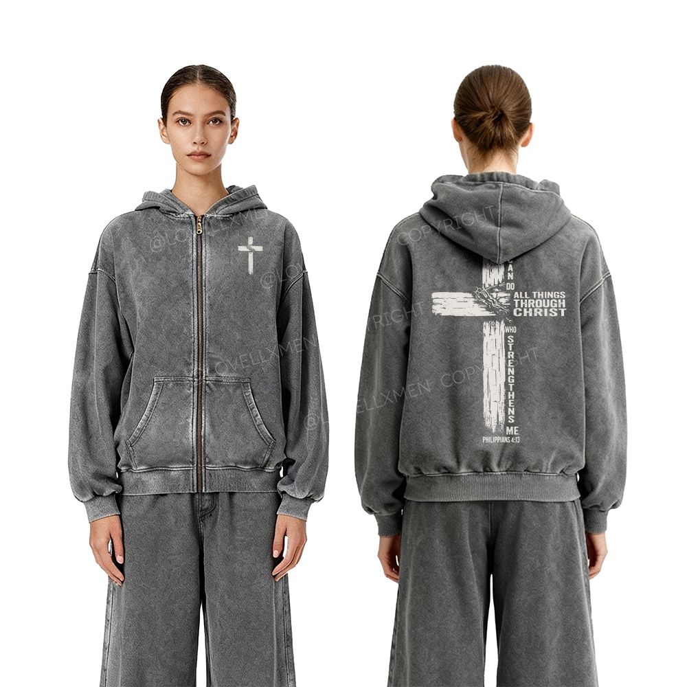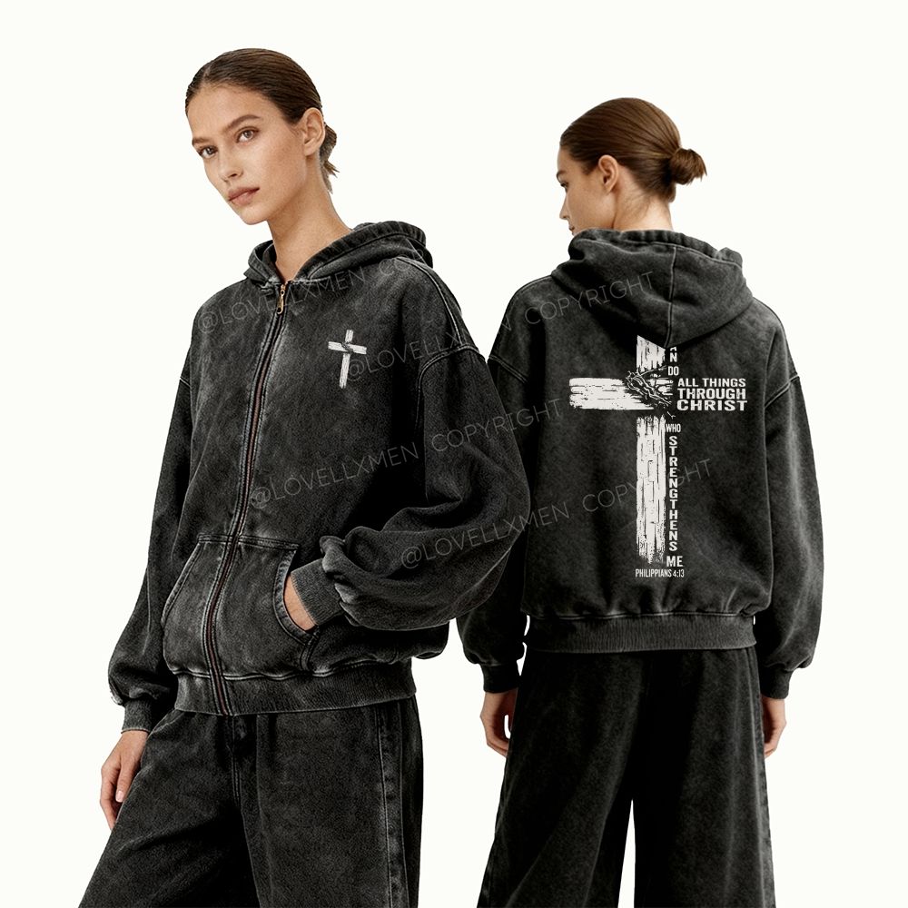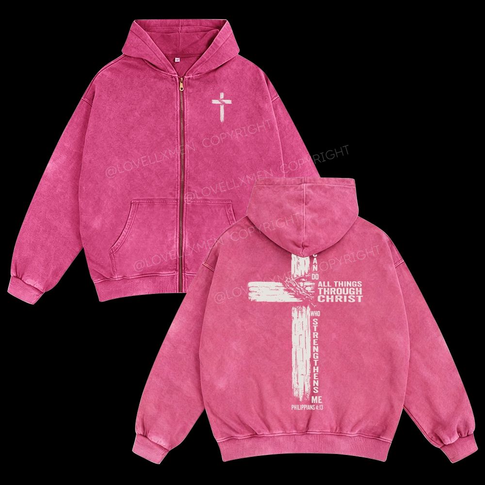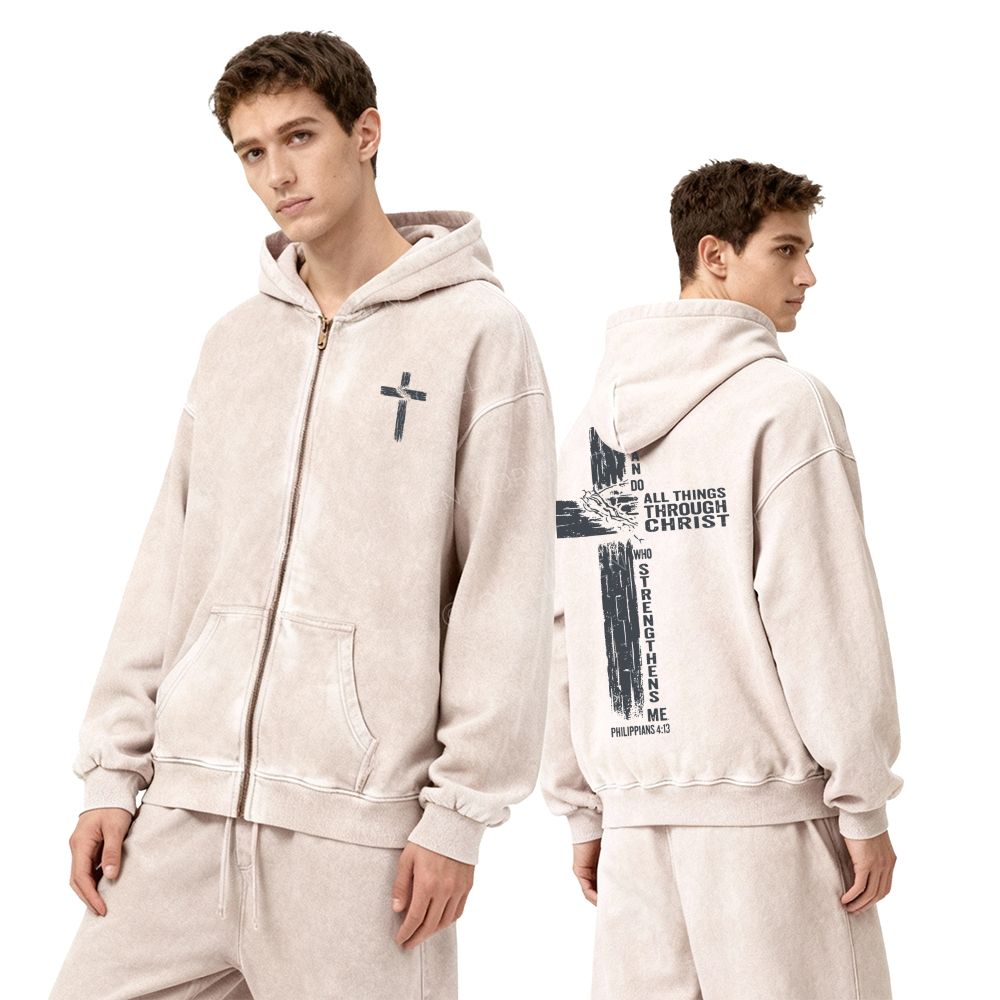 All Things Through Christ Unisex Washed Zip-Up Hoodie