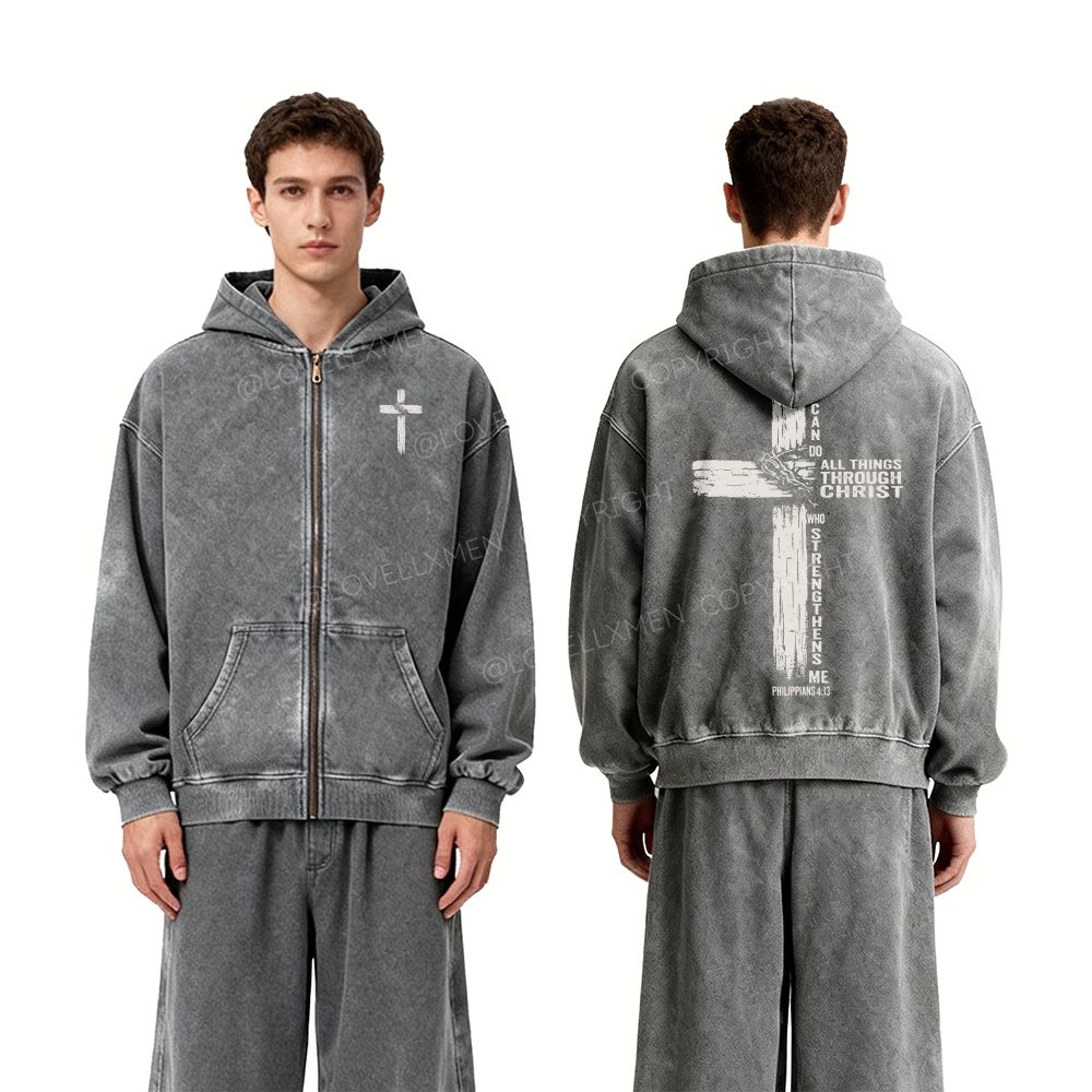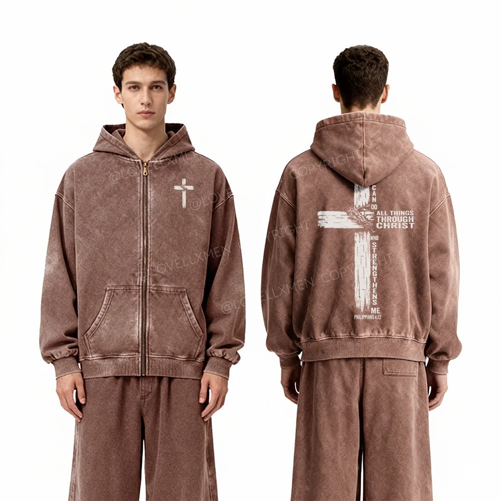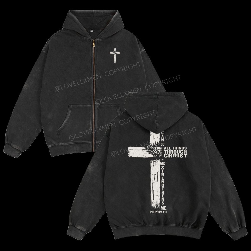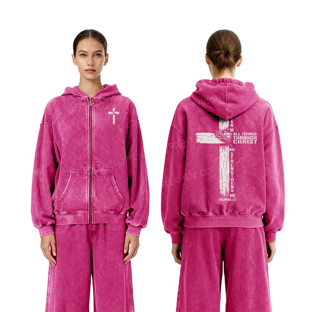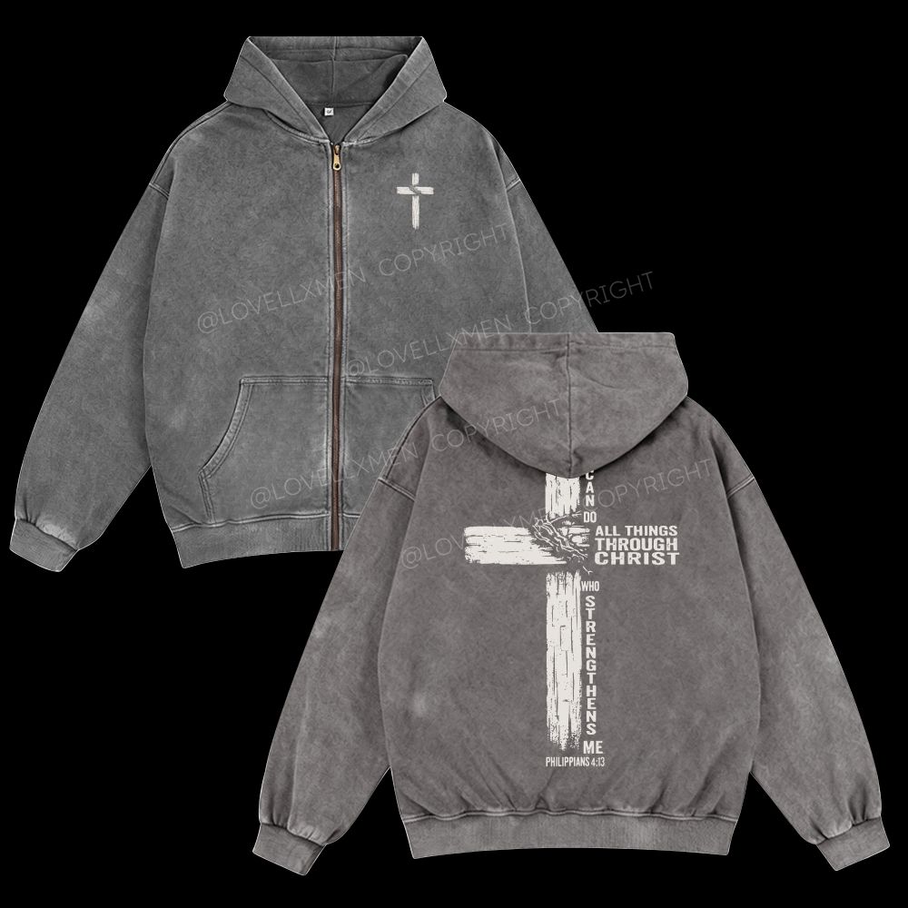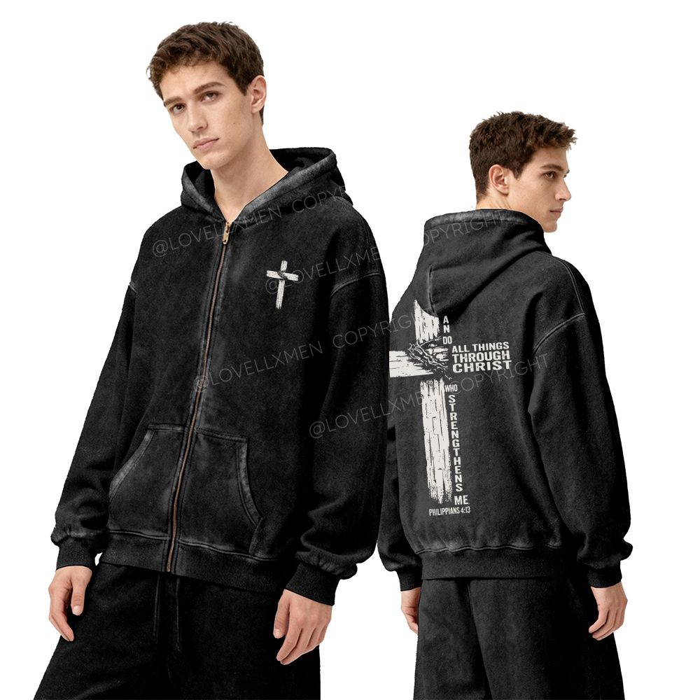 All Things Through Christ Unisex Washed Zip-Up Hoodie