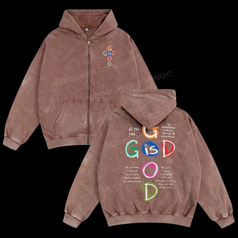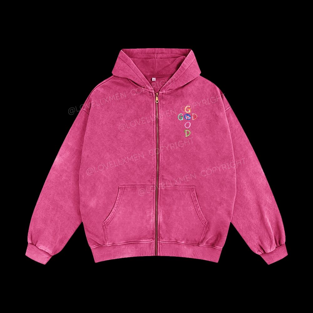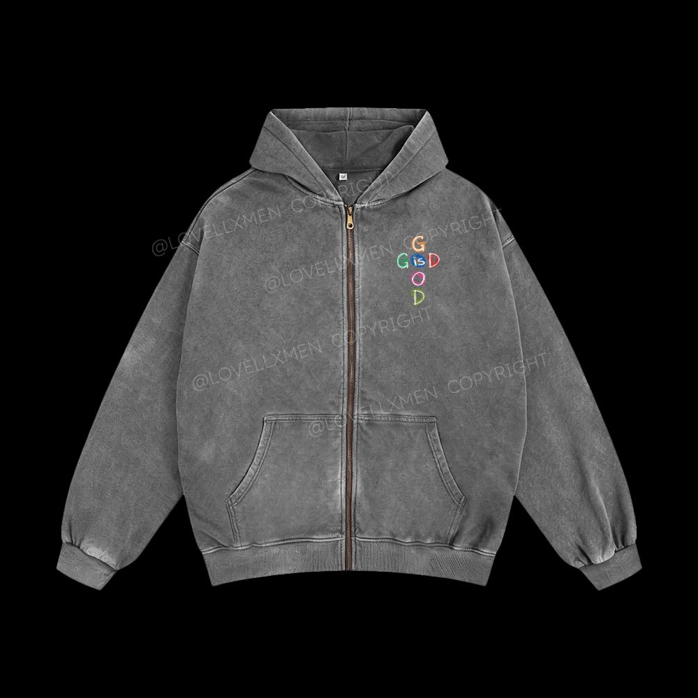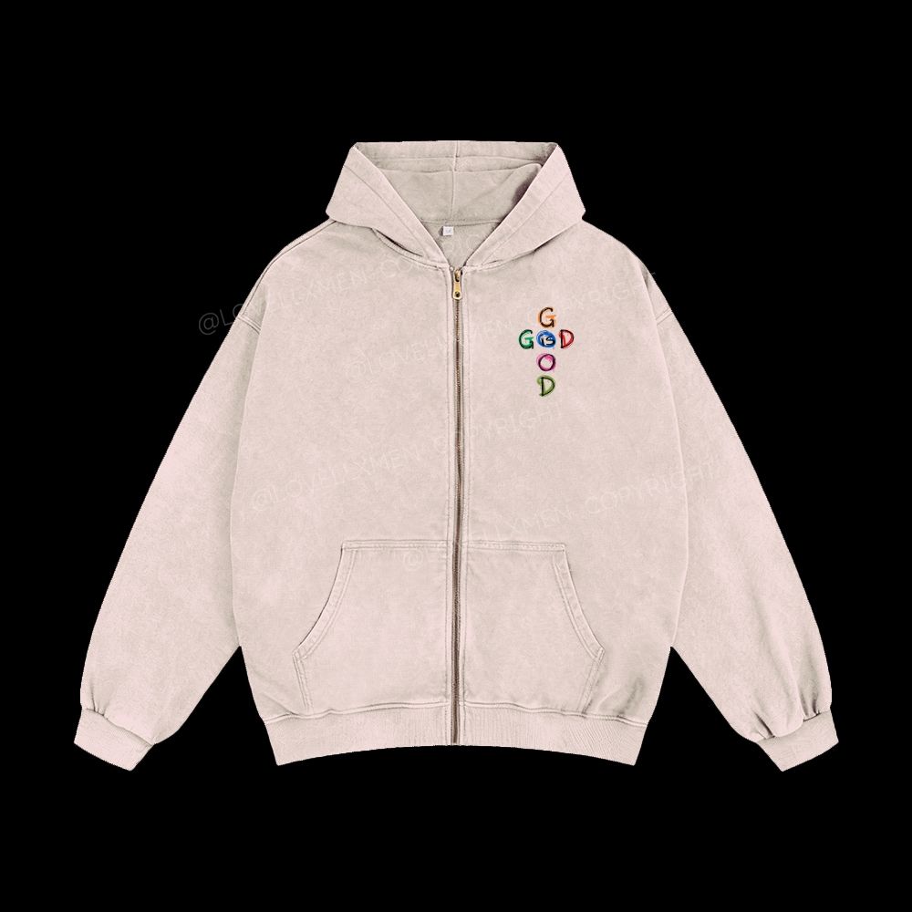 God Is Good Unisex Washed Zip-Up Hoodie