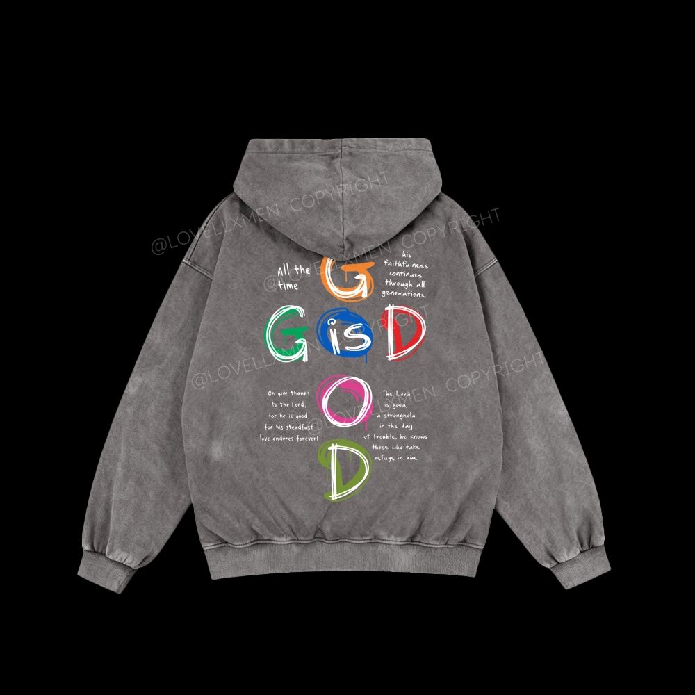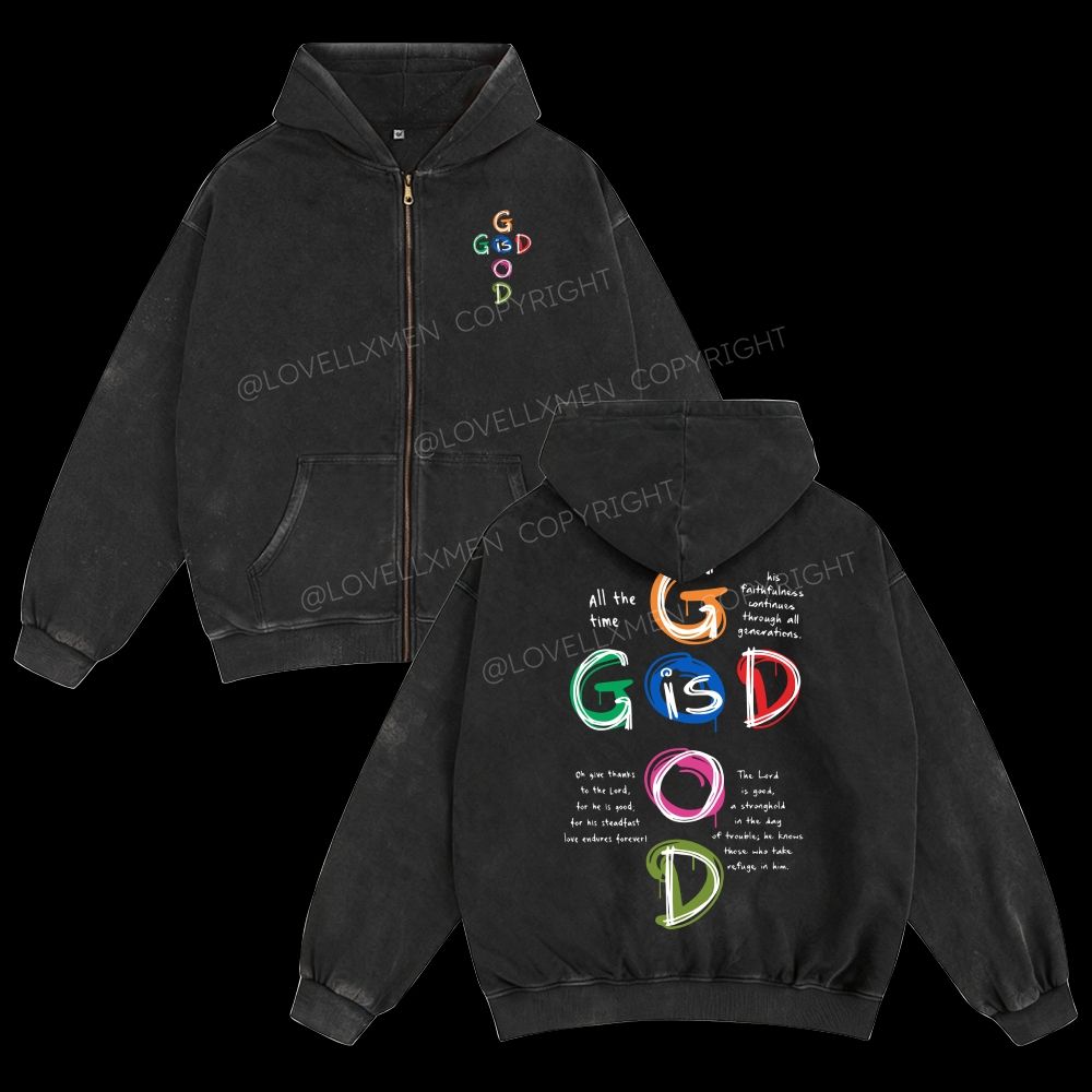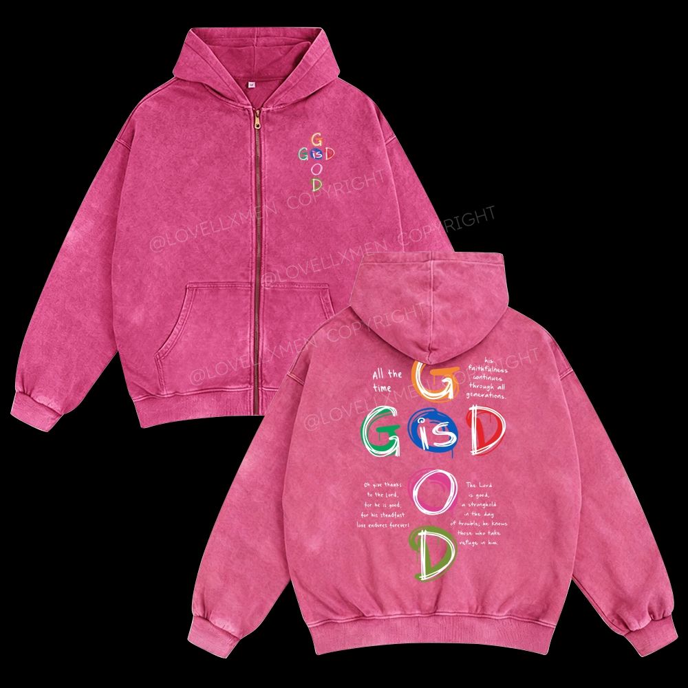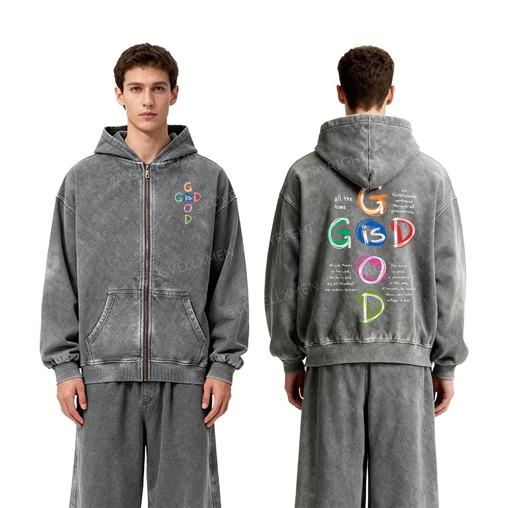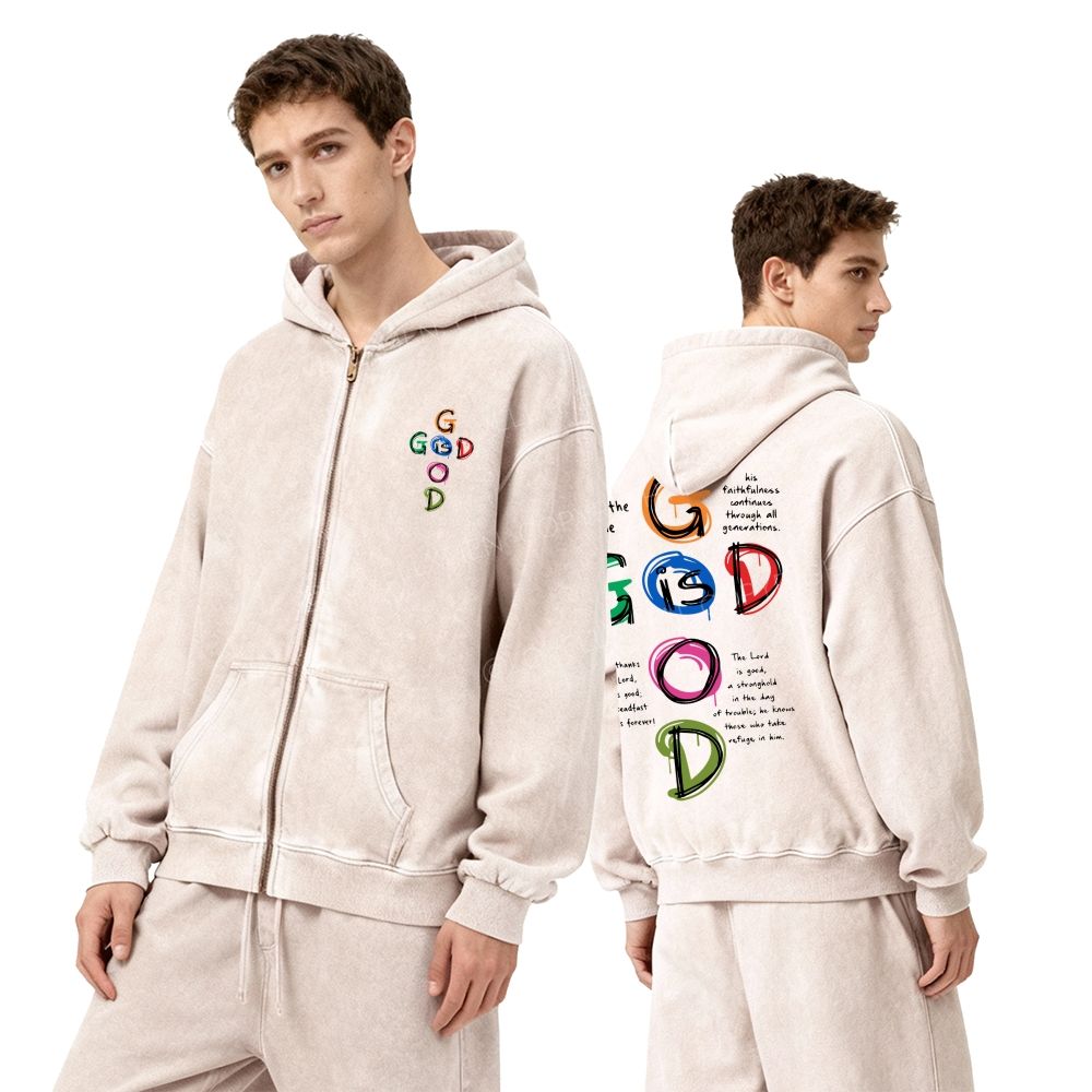 God Is Good Unisex Washed Zip-Up Hoodie
