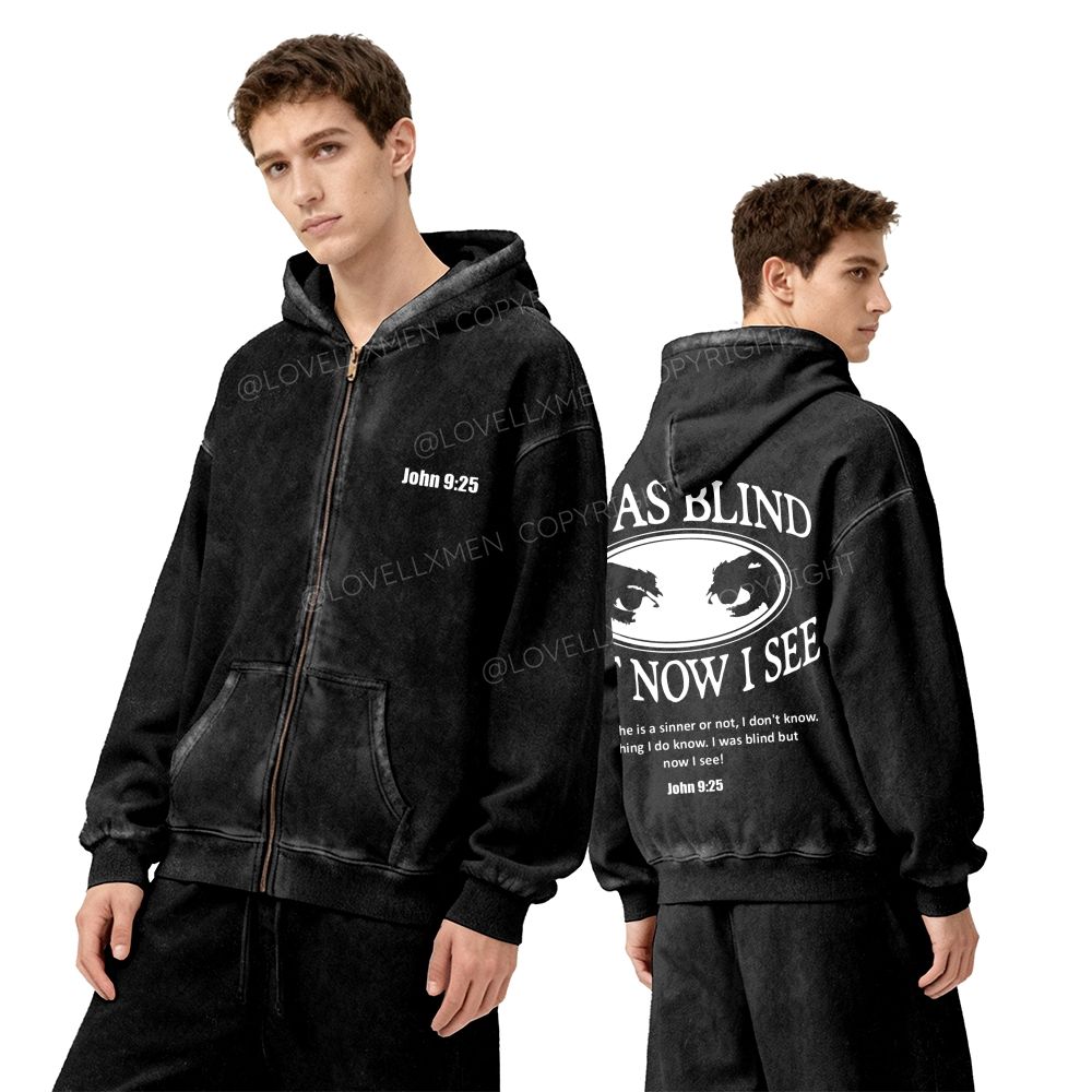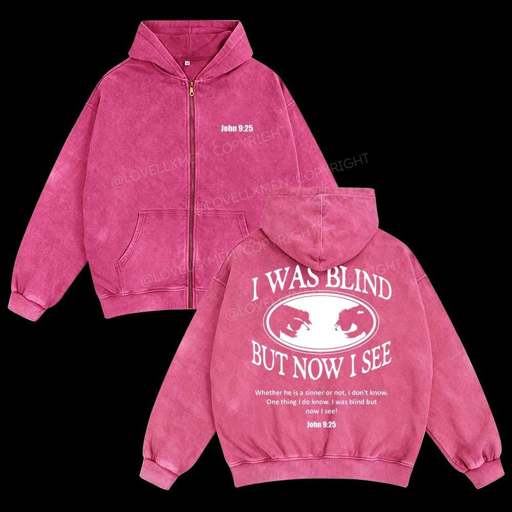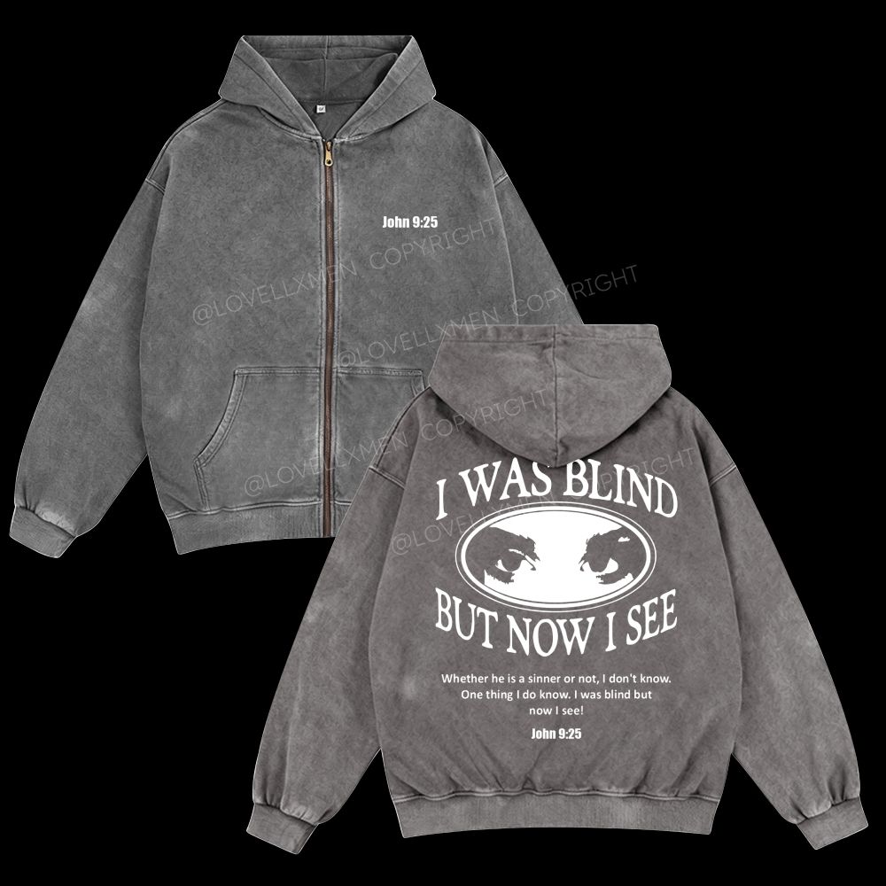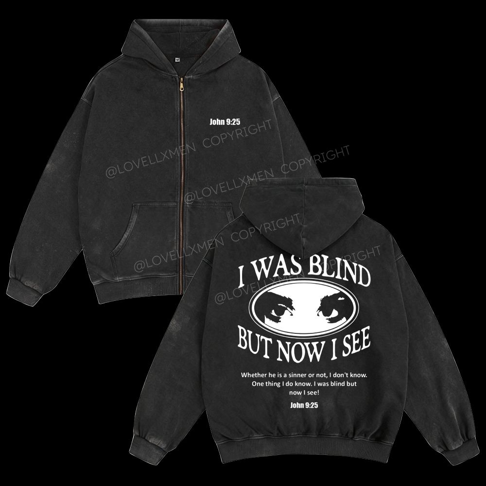 I Was Blind But Now I See Unisex Washed Zip-Up Hoodie