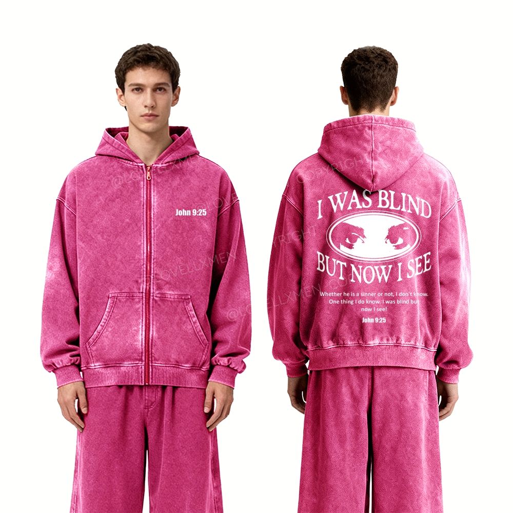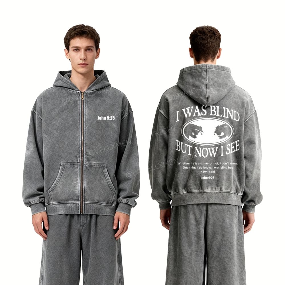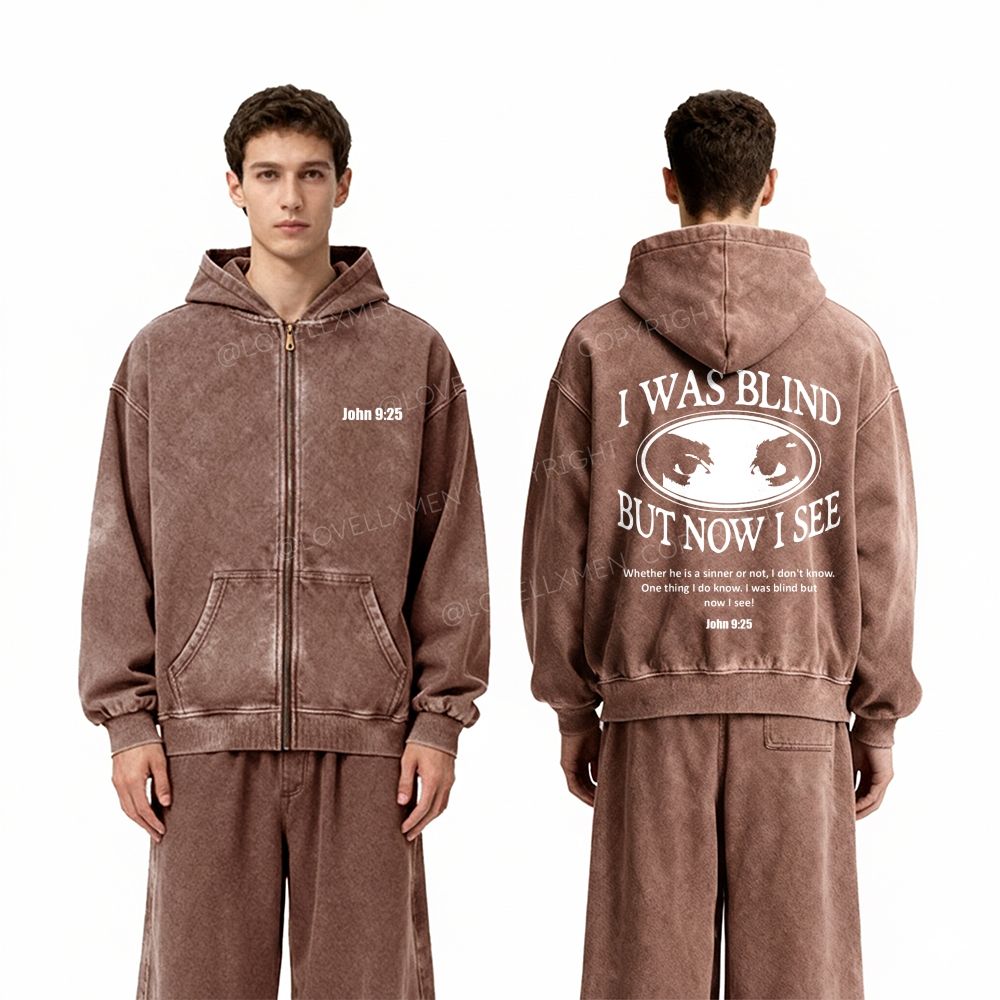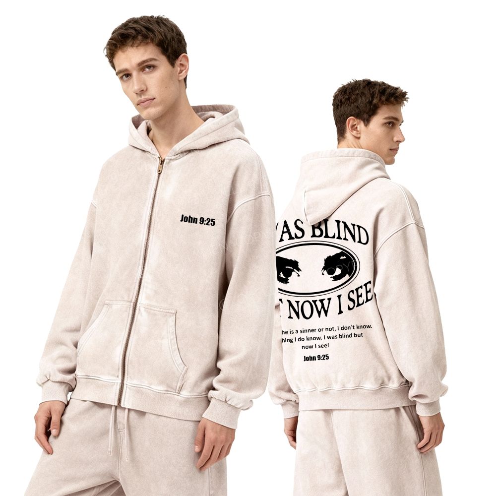 I Was Blind But Now I See Unisex Washed Zip-Up Hoodie
