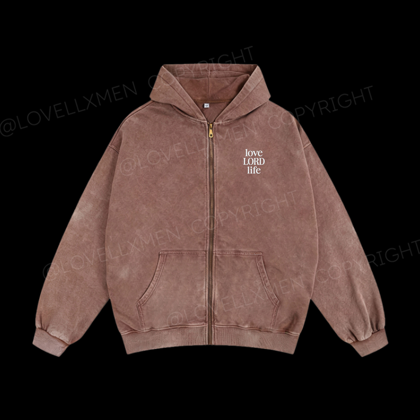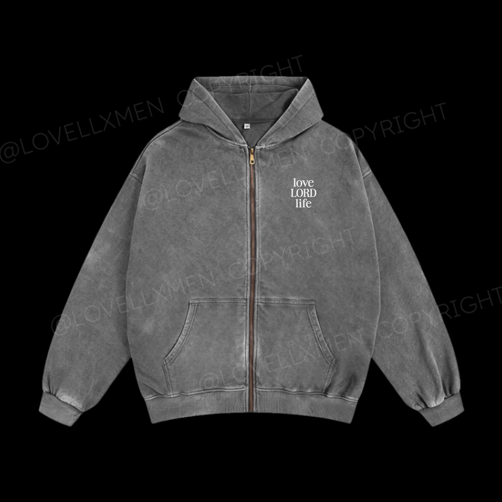 Love Lord Life Embroidery Unisex Washed Zip-Up Hoodie