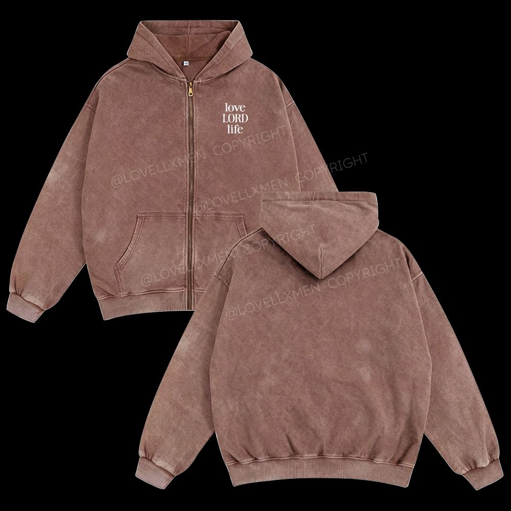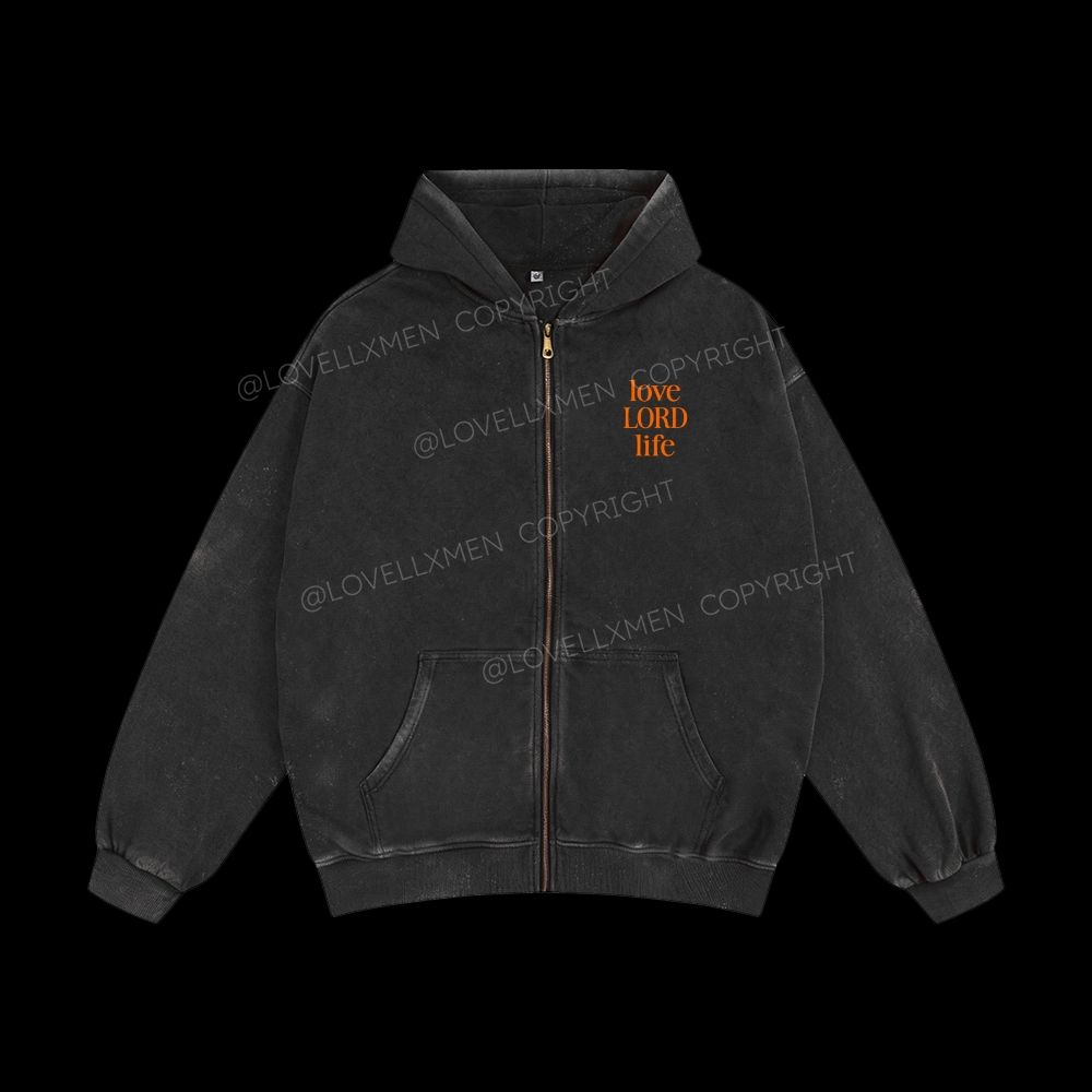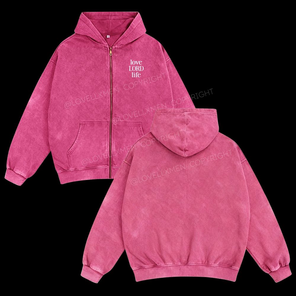 Love Lord Life Unisex Washed Zip-Up Hoodie