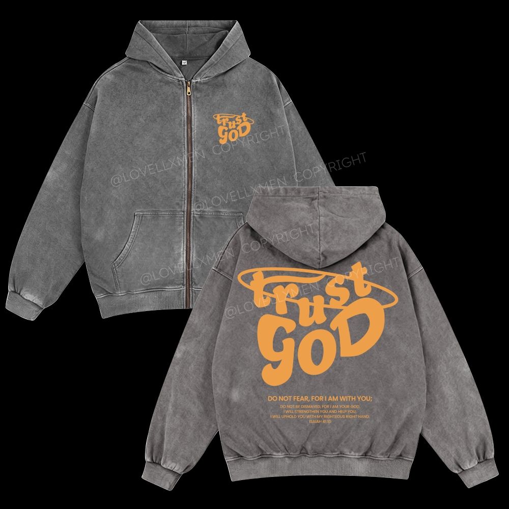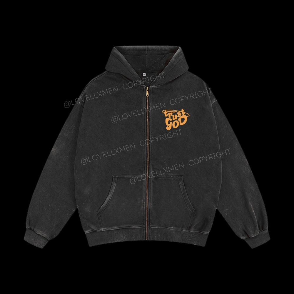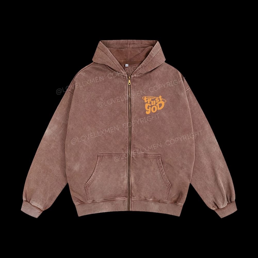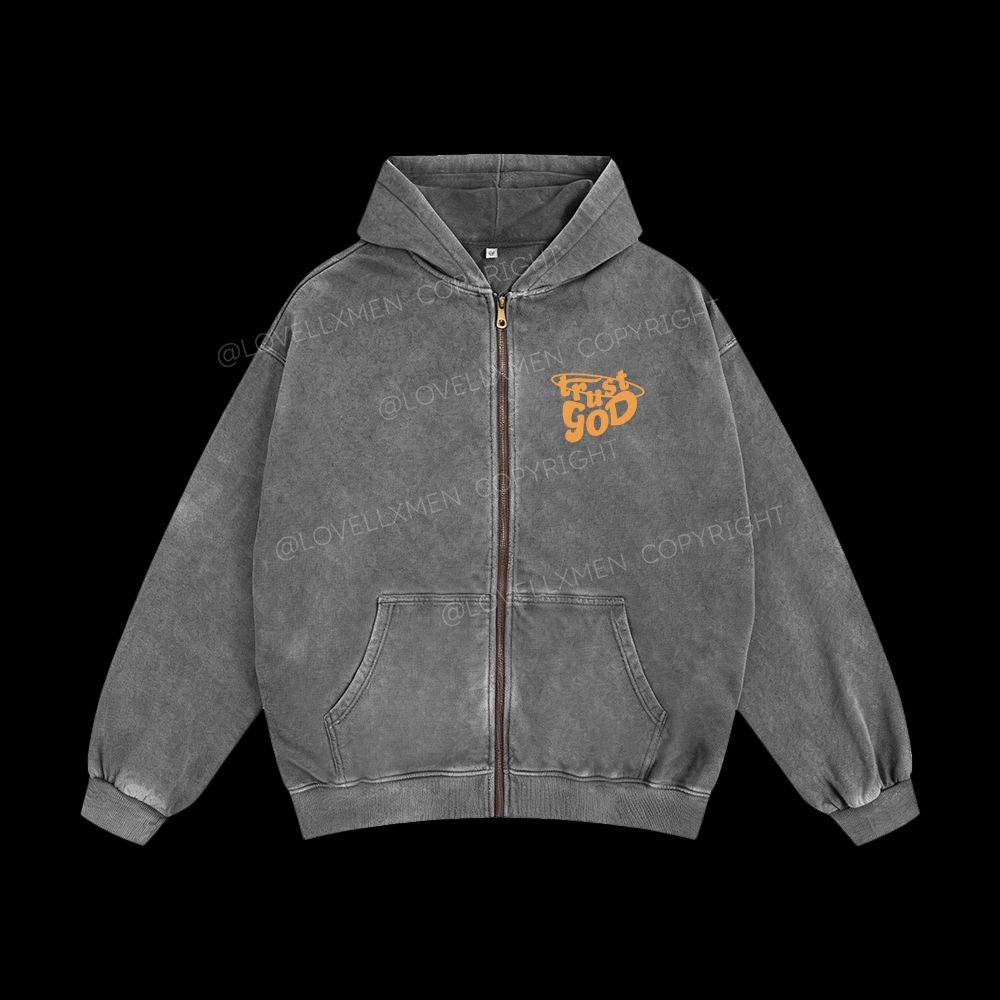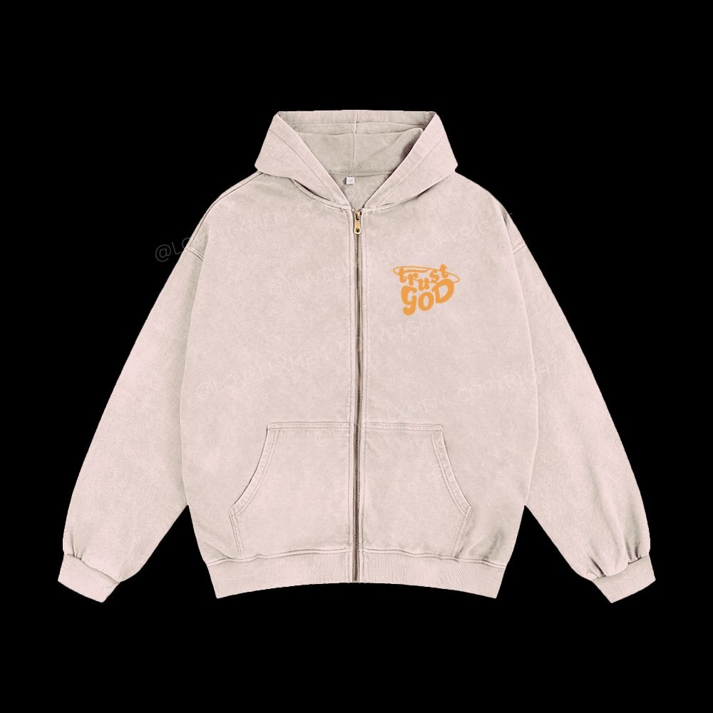 Trust God Unisex Washed Zip-Up Hoodie
