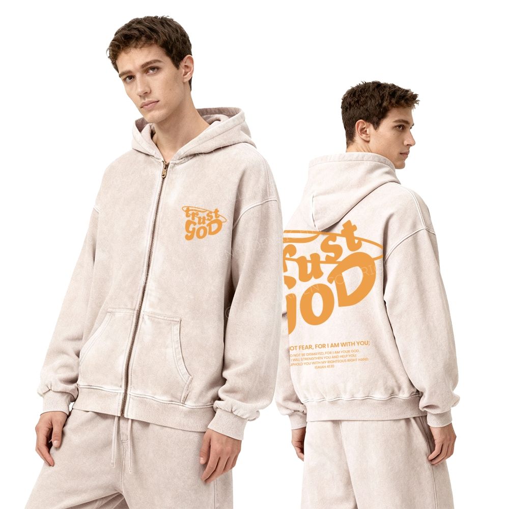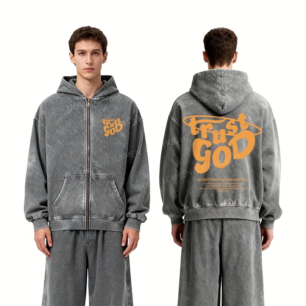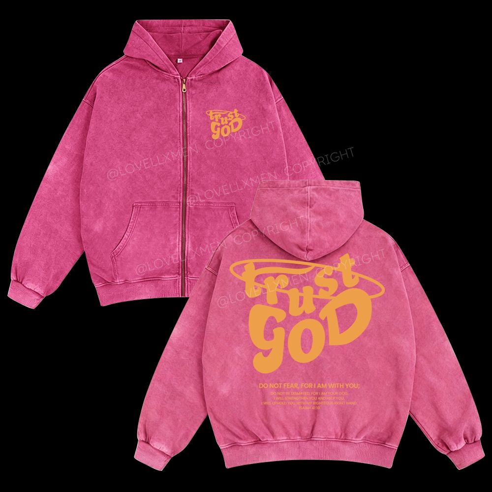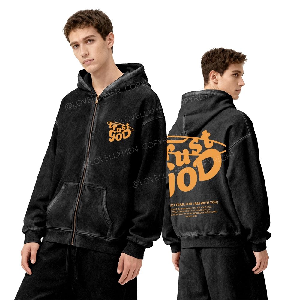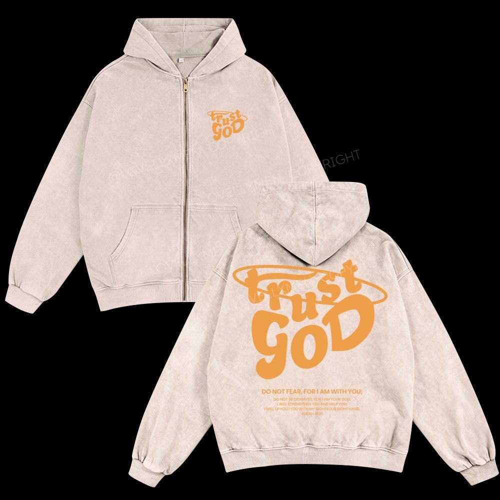 Trust God Unisex Washed Zip-Up Hoodie