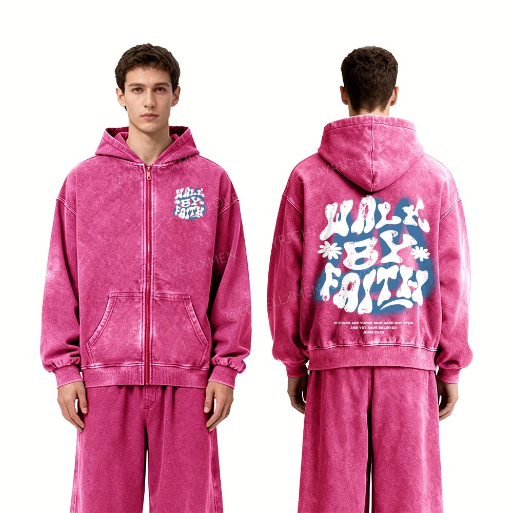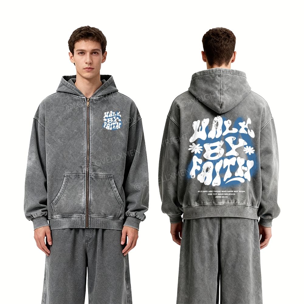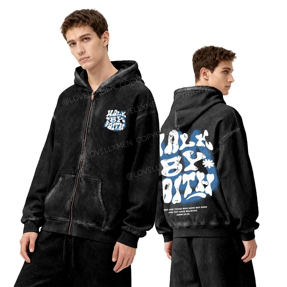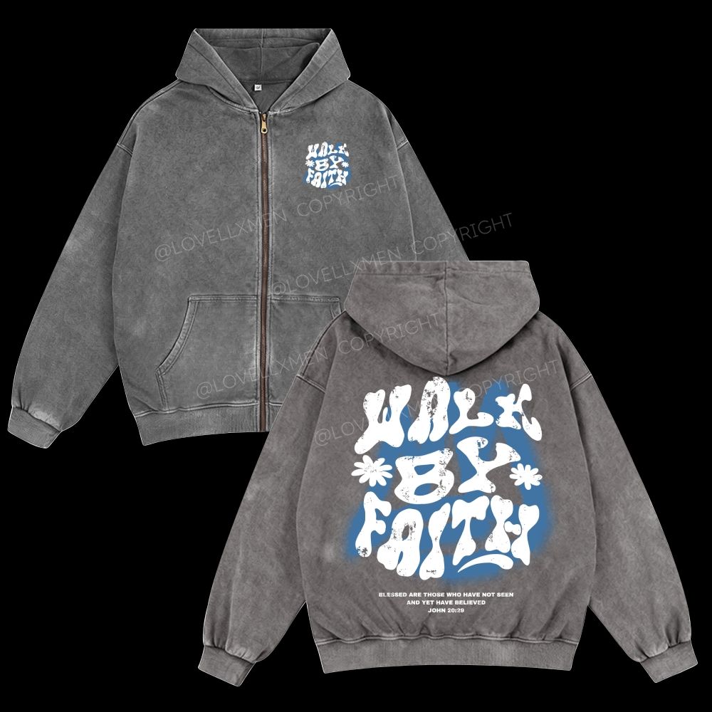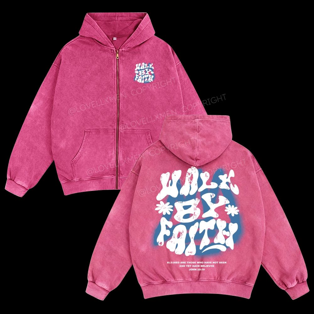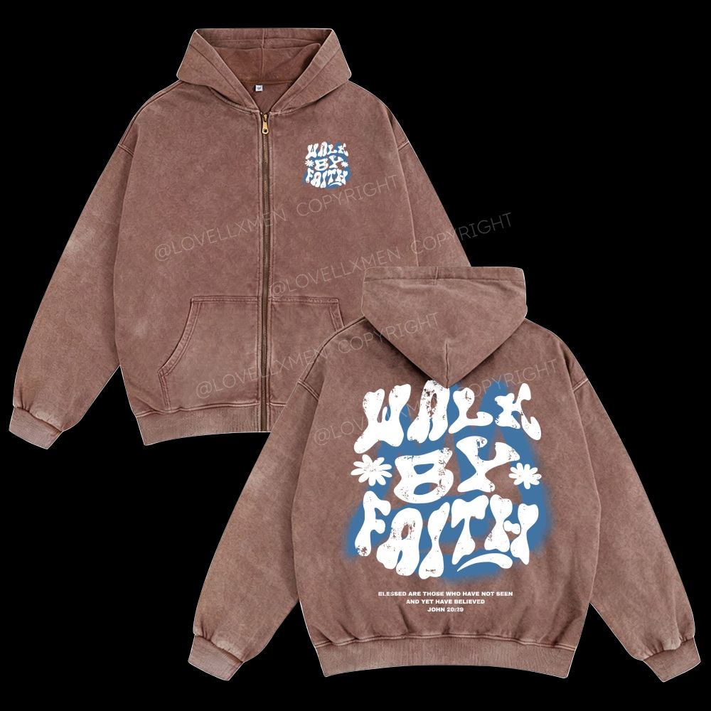 Walk By Faith Unisex Washed Zip-Up Hoodie